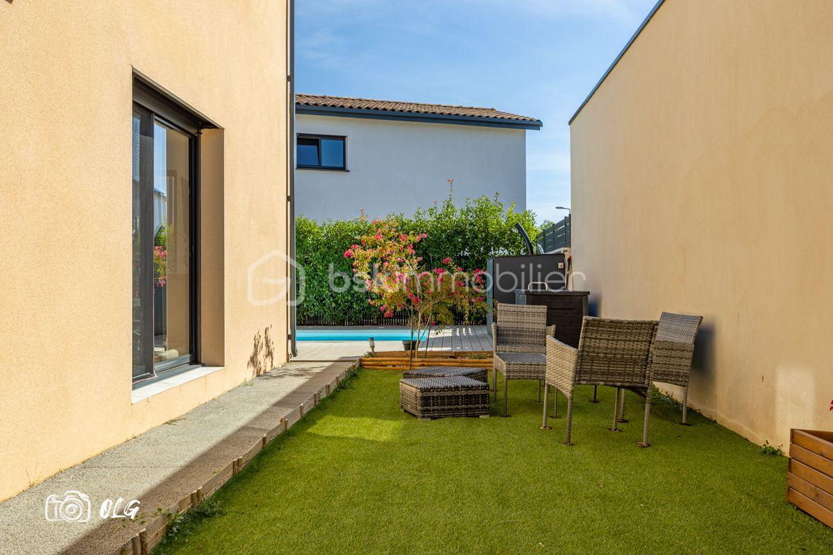 Elle offre 106 m² habitables sur un terrain de 317 m², avec piscine et terrasses sans vis-à-vis.