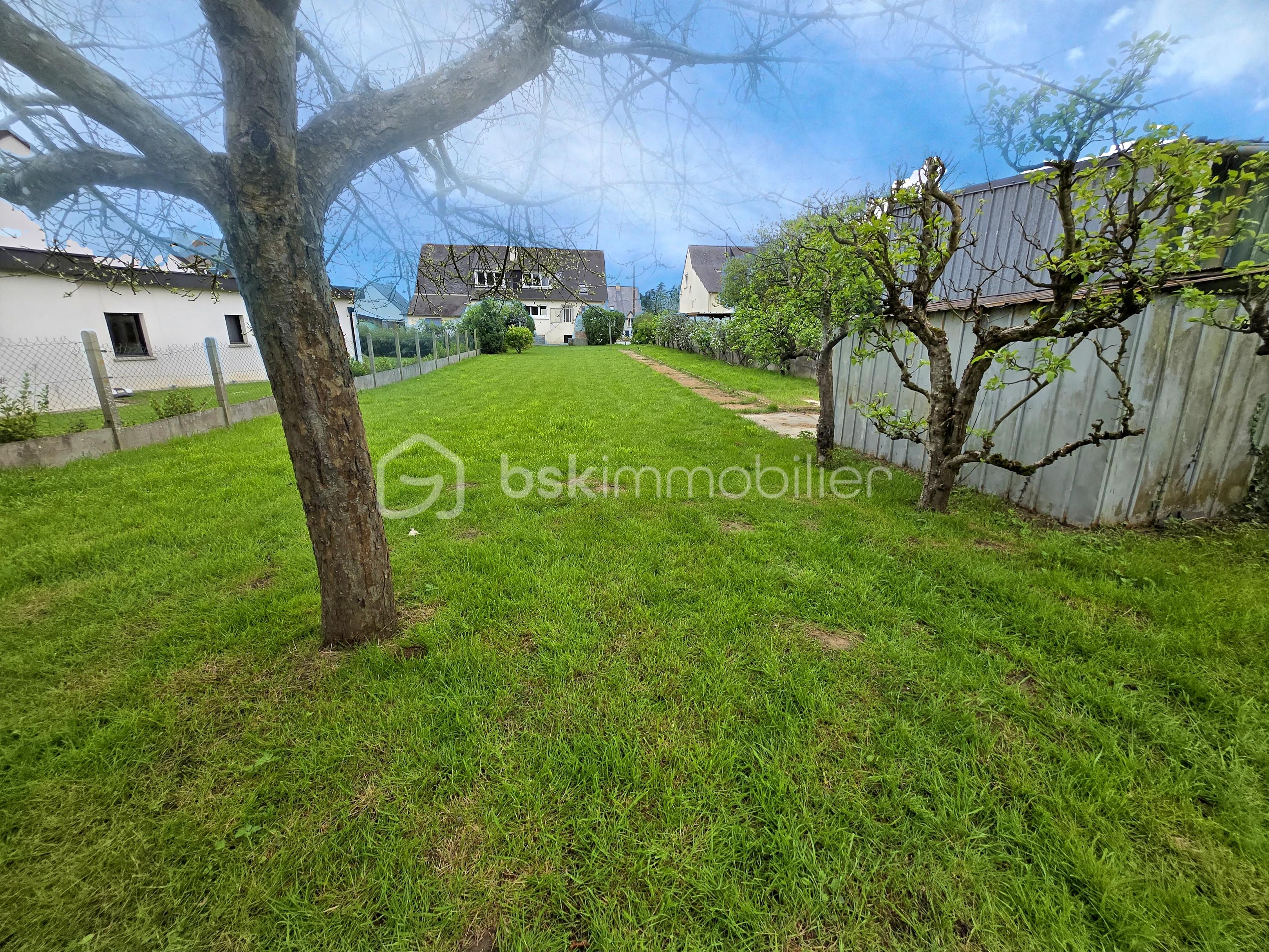 À l’extérieur, le jardin clos de 800 m², orné d’arbres fruitiers, offre à la fois un cadre de détente et un potentiel d’évolution grâce à sa constructibilité.